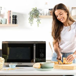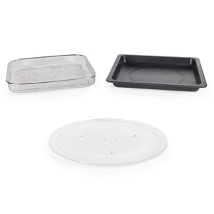 - THE AIR FRYER THAT MICROWAVES: Transform your kitchen with our Salter DuoWave Air Fryer Microwave Oven, which combines an air fryer, combi-oven and microwave all in one appliance! Crisp, cook, roast, bake, reheat and defrost all types of food at the click of a button. A crisper tray, baking pan and 31.5cm turntable are all included.