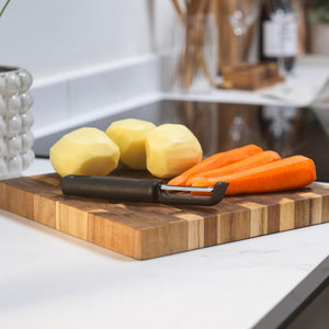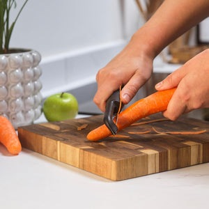 - FLEXIBLE SWIVEL BLADE - The sharp stainless-steel blade pivots to follow the natural curves of fruit and vegetables, making peeling effortless and precise, perfect for potatoes, carrots, apples and more.