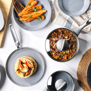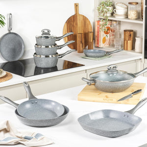 - EASY CLEAN NON-STICK: Cook and prepare healthier meals using less oil thanks to the high-performance non-stick coating! Cook with confidence, without the worry of food sticking to the pan with the grey marble effect interior.