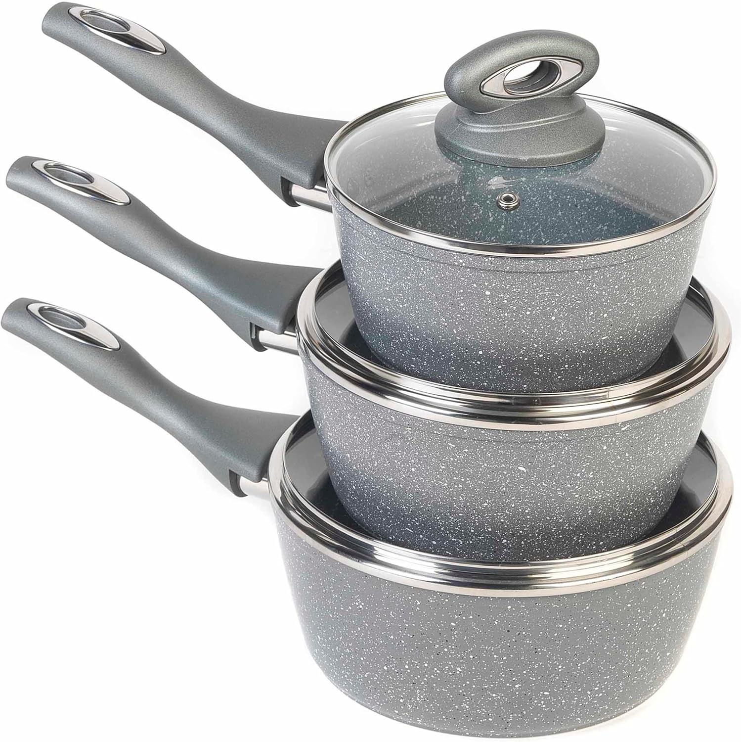 - HIGH-PERFORMANCE COOKING: Whether you have a gas, electric, induction or ceramic, this 3-piece saucepan set is compatible with all types of hobs and stoves. A 16cm, 18cm and 20cm pan is included, perfect for sauces, pasta, vegetables and more!