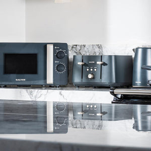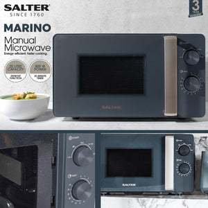 - Add a touch of sophistication to your kitchen with this Manual Microwave from the Salter Marino Collection in a stunning blue grey.