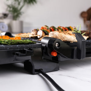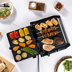 - NON-STICK: Featuring megastone non-stick coating on the electric grill plates to ensure easy removal of food. Use little to no oil and catch any excess fat and grease in the removable drip tray.