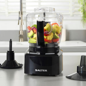 Salter Mini Food Processor - Prep Pro Compact Food Mixer, Electric Vegetable Chopper, 1L BPA-Free Plastic Easy Pour Jug, Stir, Mix, Blend, Chop, Whip & Grind, Stainless Steel Blade, 200W, Black