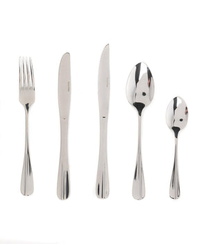 Dine in style with the Newbury 20-piece cutlery set by Salter. Made from mirror polished stainless steel, the flatware set is sure to impress your dinner guests and is dishwasher safe. This contemporary collection is comfortable to hold and adds a classic design to your table. Perfect for matching most tableware schemes this durable set will compliment your dinnerware nicely. From parties to weddings, midweek dinners to romantic meals for two, this luxurious cutlery set will suit any occasion.