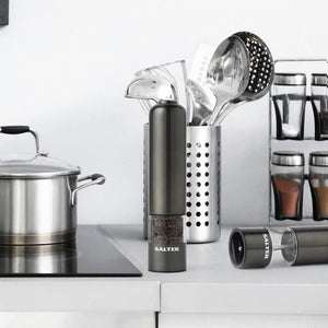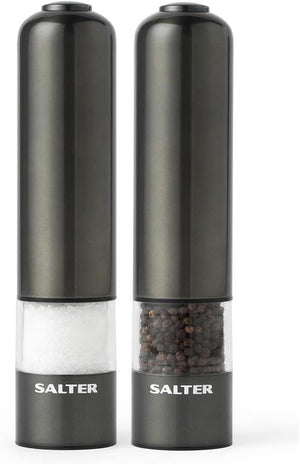 - These Salter rechargeable salt and pepper mills are perfect for any modern home and feature a stylish, practical design.