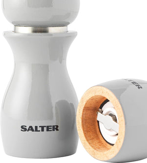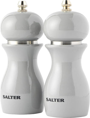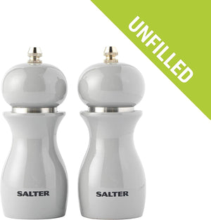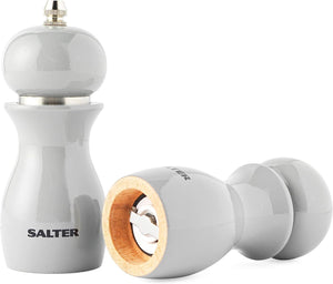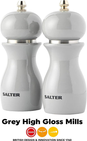 - The perfect addition to any modern home, this set of Salt and Pepper Mills from Salter boast a stylish grey high gloss finish.