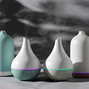 - Perfect for any home, this USB ultrasonic aroma mist diffuser is designed with a teardrop inspired top and neutral blue base.