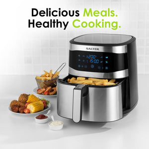 - A perfect alternative to deep fried food, cook your favourite meals using little to no oil with the Salter Go Healthy Hot Air Fryer.