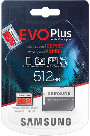 Samsung Evo Plus 100MBs MicroSD Memory Card Storage with Adapter - 512GB for Drone, Camera, Mobile Phones, Nintendo Switch