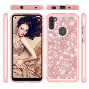 Samsung Galaxy A11 / M11 Glitter Protective Case Cover (Rose Gold)