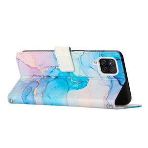 Samsung Galaxy A12 Crossbody Painted Marble Pattern Leather Phone Case Cover (Pink Green)