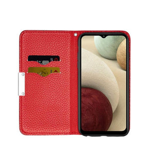 Samsung Galaxy A12 Litchi Texture Horizontal Flip Leather Case with Holder & Card Slots (Red)