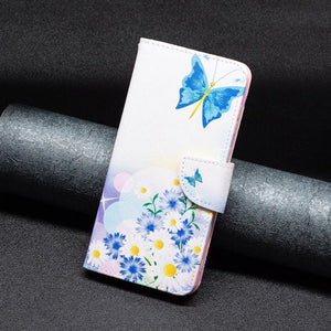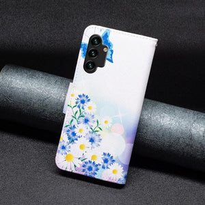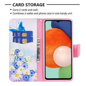 Samsung Galaxy A13 4G Colored Drawing Pattern Leather Phone Case Cover (Flower Butterfly)