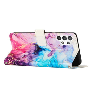 Samsung Galaxy A13 4G Crossbody Painted Marble Pattern Leather Phone Case Cover (Pink Purple)