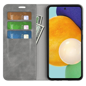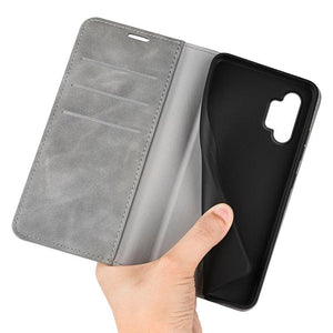 Samsung Galaxy A13 4G Retro-skin Magnetic Leather Case Cover with Holder & Card Slots & Wallet (Grey)