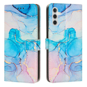 Samsung Galaxy A14 5G Painted Marble Pattern Leather Phone Case Cover (Pink Green)
