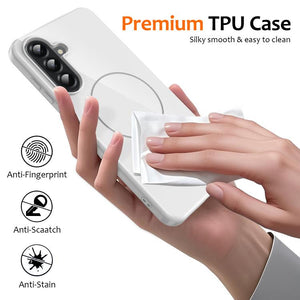 Protect your Samsung Galaxy A17 4G with this stylish and functional phone case. Designed with a glossy TPU material, this case offers shockproof protection to safeguard your device from everyday drops and bumps. The integrated MagSafe feature ensures secure attachment of MagSafe accessories, while the included lanyard adds convenience and portability. Its elegant white finish complements your device, offering both style and protection.