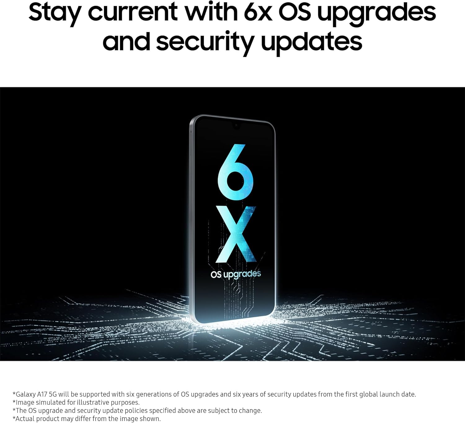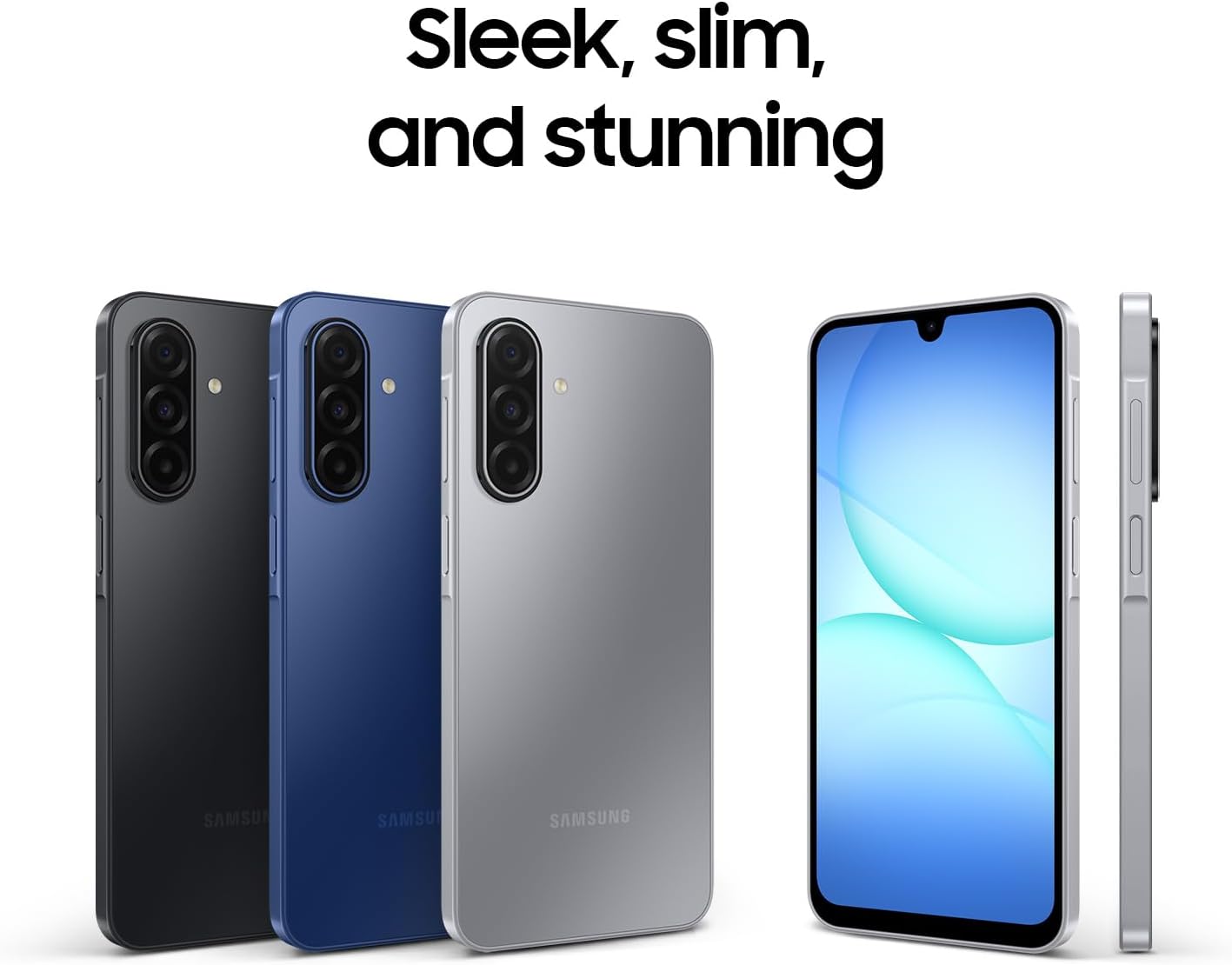 - Sleek, Slim, and Stunning: The Galaxy A17 Samsung smartphone comes in a slimmer and improved 7.5 mm frame with the revamped 2.0 Key Island; The sleek and linear camera cluster provides more style for less bulk and a more elegant design