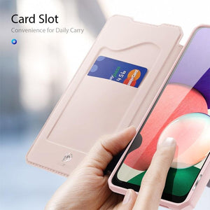 Samsung Galaxy A22 5G DUX DUCIS Skin X Series Horizontal Flip Leather Case Cover with Holder & Card Slots (Pink)