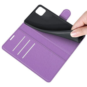 Samsung Galaxy A22 5G Litchi Texture Horizontal Flip Protective Case with Holder & Card Slots & Wallet (Purple)