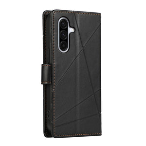 Samsung Galaxy A26 5G PU Genuine Leather Texture Embossed Line Phone Case Cover (Black)
