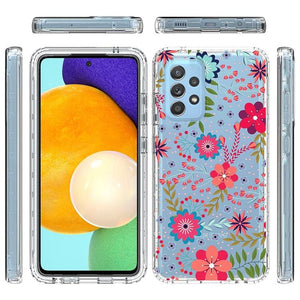 Samsung Galaxy A52 / A52s 5G / 4G 2 in 1 High Transparent Painted Shockproof Protective Case Cover (Small Floral)