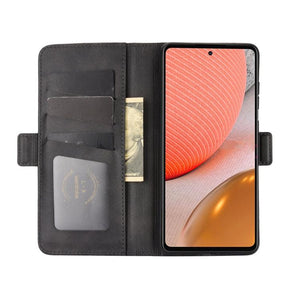 Samsung Galaxy A72 4G / 5G Dual-side Magnetic Buckle Horizontal Flip Leather Case Cover with Holder & Card Slots & Wallet (Black)