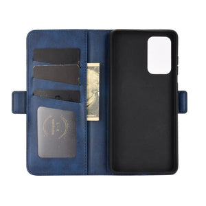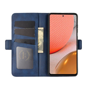 Samsung Galaxy A72 4G / 5G Dual-side Magnetic Buckle Horizontal Flip Leather Case Cover with Holder & Card Slots & Wallet (Dark Blue)