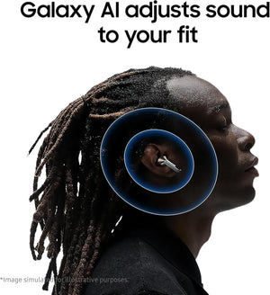 - Galaxy AI-Powered Sound: Delve into your personal soundscape with Galaxy AI-assisted Adaptive EQ/ Adaptive ANC. AI-boosted algorithm analyses sound detected through the mics in real-time then optimises your listening experience by adjusting the sound to conform to your fit.⁸