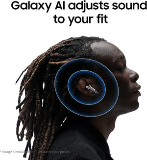 - Galaxy AI-Powered Sound: Delve into your personal soundscape with Galaxy AI-assisted Adaptive EQ/ Adaptive ANC. AI-boosted algorithm analyses sound detected through the mics in real-time then optimises your listening experience by adjusting the sound to conform to your fit.⁸