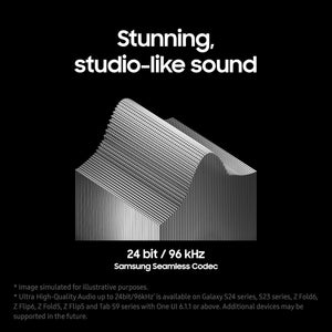 - Immersive Sound with Ultimate Hi-Fi: Retain ultra-high quality audio from the recording studio to your Galaxy Buds3 Pro. The Samsung Seamless Codec compresses and encodes up to 24bit/ 96kHz, high fidelity sound so you can hear the intricate details, just as it was intended.⁴