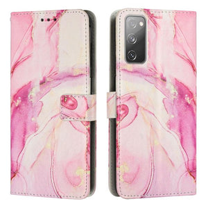 Samsung Galaxy S20 FE Painted Marble Pattern Leather Phone Case Cover (Rose Gold)