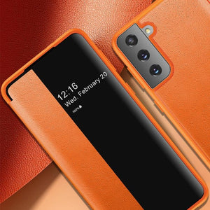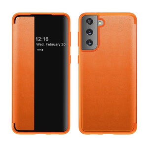 Samsung Galaxy S21+ 5G Magnetic Side Window View Shockproof Horizontal Flip Leather Case Cover (Orange)