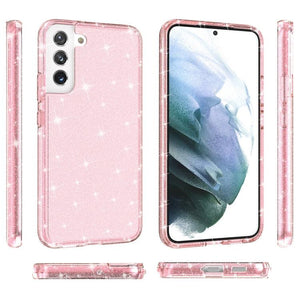 Samsung Galaxy S21 FE 5G Shockproof Terminator Style Glitter Powder Protective Phone Case Cover (Pink)