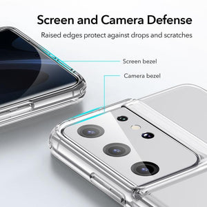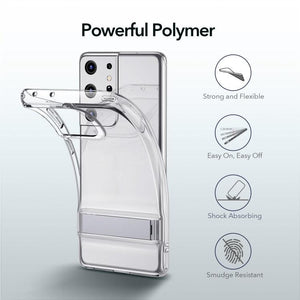 Samsung Galaxy S21 Ultra 5G ESR Air Shield Boost Shockproof PC Back + Flexible Bumper Protective Case Cover with Metal Holder (Clear White)