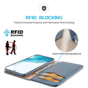 Samsung Galaxy S22 5G DUX DUCIS Hivo Series Cowhide Texture Leather Phone Case Cover (Light Blue)