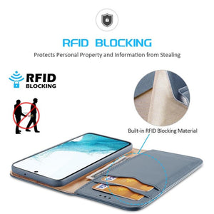 Samsung Galaxy S22+ 5G DUX DUCIS Hivo Series Cowhide Texture Leather Phone Case Cover (Light Blue)