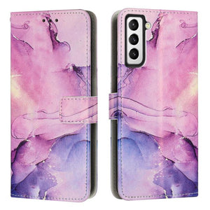 Samsung Galaxy S22+ 5G Painted Marble Pattern Leather Phone Case Cover (Purple)