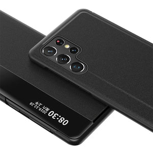Samsung Galaxy S22 Ultra 5G Window View Leather Phone Case Cover (Gold)