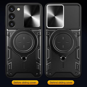 Samsung Galaxy S23 5G CD Texture Sliding Camshield Magnetic Holder Phone Case Cover (Pink)