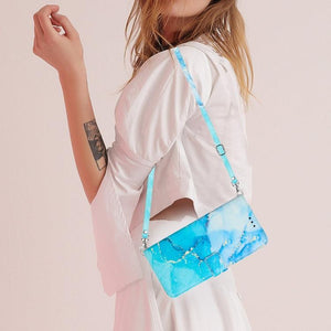 Samsung Galaxy S23 5G Crossbody Painted Marble Pattern Leather Phone Case Cover (Blue Green)
