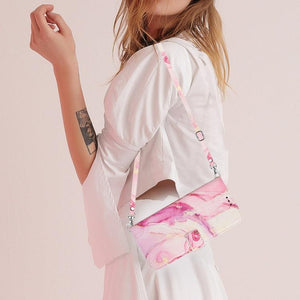 Samsung Galaxy S23 5G Crossbody Painted Marble Pattern Leather Phone Case Cover (Rose Gold)