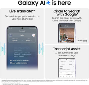 ¹ Circle to Search results may vary depending on visual matches. Requires internet connection. Users may need to update Android to the latest version. Product functionality may be dependent on your app and device settings. Some functions may not be compatible with certain apps. Availability of the service varies by country and language. Accuracy of results is not guaranteed ² Live Translate requires a network connection and Samsung Account login. Live Translate is only available on the pre-installed Samsung Phone app. Certain languages may require language pack download. Service availability may vary by language. Accuracy of results is not guaranteed ³ Transcript Assist requires a network connection and Samsung Account login. Transcript Assist is only available on the pre-installed Samsung Voice Recorder app or files recorded using the pre-installed Samsung Phone app. Voice recording feature in the pre-installed Samsung Phone app may not be supported in some countries. Audio files must be under 3 hours in duration to be processed. Summarising feature in Transcript Assist can be activated when a certain number of characters is met. Service availability may vary by language. Accuracy of results is not guaranteed ⁴ Generative Edit requires a network connection and Samsung Account login. Editing with Generative Edit results in a resized photo up to 12MP. A visible watermark is overlaid on the image output upon saving in order to indicate that the image is generated by AI. The accuracy and reliability of the generated output is not guaranteed ⁵ Galaxy S24+ compared to S24. ⁶ Frame does not include volume and side keys or SIM tray ⁷ Galaxy S24 and S24+ are rated as IP68. Based on lab test conditions for submersion in up to 1.5 meters of freshwater for up to 30 minutes. Not advised for beach or pool use. Water and dust resistance of device is not permanent and may diminish over time because of normal wear and tear ⁸ Compared to Galaxy S23 and S23+ ⁹ 30X Space Zoom includes 3x optical zoom and 30x digital zoom with Super Resolution technology. Zoom distances past 3x zoom may express some image deterioration ¹⁰ AI Zoom is applied to distances between digital zoom lengths. Accuracy of results not guaranteed ¹¹ Actual battery life varies by network environment, features and apps used, frequency of calls and messages, the number of times charged, and many other factors. Estimated against the average usage profile compiled by UX Connect Research. Independently assessed by UX Connect research between 2023.11.25-2023.12.15 in US and UK with pre-release versions of SM-S921, SM-S926 under default setting using LTE and 5G Sub6 networks. NOT tested under 5G mm Wave network ¹² Typical value tested under third-party laboratory condition. Typical value is the estimated average value considering the deviation in battery capacity among the battery samples tested under IEC 61960 standard. Rated capacity is 3880mAh for Galaxy S24, 4755mAh for Galaxy S24+. Actual battery life may vary depending on network environment, usage patterns and other factors ¹³ Based on Samsung internal lab test conditions with pre-release version of given model connected to earphone via Bluetooth under default settings over LTE. Estimated against battery capacity and measured current over battery power consumption during video playback (video file resolution 720p, saved on device) and audio playback (mp3 file, 192kbps, saved on device with LCD display turned off), respectively. Actual video and audio playback times vary by network connection, settings, file format, screen brightness, battery condition and many other factors ¹⁴ Measured diagonally, Galaxy S24's screen size is 6.2 inches in the full rectangle and 6 inches accounting for the rounded corners; actual viewable area is less due to the rounded corners and camera hole ¹⁵ Dynamic AMOLED 2X display on Galaxy S24 and S24+ received a certification from VDE Germany for 100 percent Mobile Colour Volume in the DCI-P3 colour range which means your images aren’t washed out and you’ll get unbelievably vivid colours regardless of differing levels of brightness. Display can achieve peak brightness of up to 2600 nits ¹⁶ Translating feature in Chat Assist may require Samsung Account login. Some chat applications may not support this feature. Certain languages may require language pack download. Service availability may vary by language. This feature is activated when a translatable language is detected. Accuracy of results is not guaranteed. To view full list of disclaimers see PDF below.