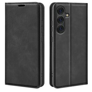 Samsung Galaxy S25 5G Retro-skin Magnetic Suction Leather Phone Case Cover (Black)