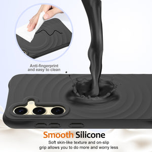 Samsung Galaxy S25 5G Wave Texture MagSafe Magnetic Liquid Silicone Phone Case Cover (Black)