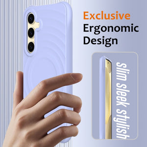 Samsung Galaxy S25 5G Wave Texture MagSafe Magnetic Liquid Silicone Phone Case Cover (Purple)