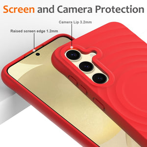 Samsung Galaxy S25 5G Wave Texture MagSafe Magnetic Liquid Silicone Phone Case Cover (Red)