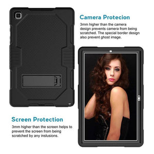 Samsung Galaxy Tab A7 10.4 (2020) T500 / T505 Contrast Color Robot Shockproof Silicon + PC Protective Case Cover with Holder & Pen Slot (Black+Black)