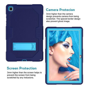 Samsung Galaxy Tab A7 10.4 (2020) T500 / T505 Contrast Color Robot Shockproof Silicon + PC Protective Case Cover with Holder & Pen Slot (Navy Blue)