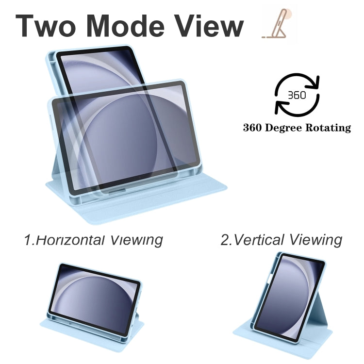 Samsung Galaxy Tab A9+ 360° Rotating Acrylic Smart Tablet Leather Case - Ice Blue